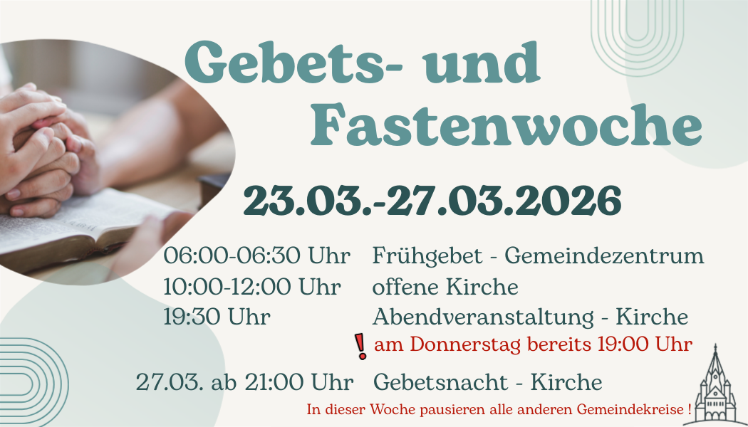 06:00 - 06:30 Uhr Frühgebet im Gemeindezentrum