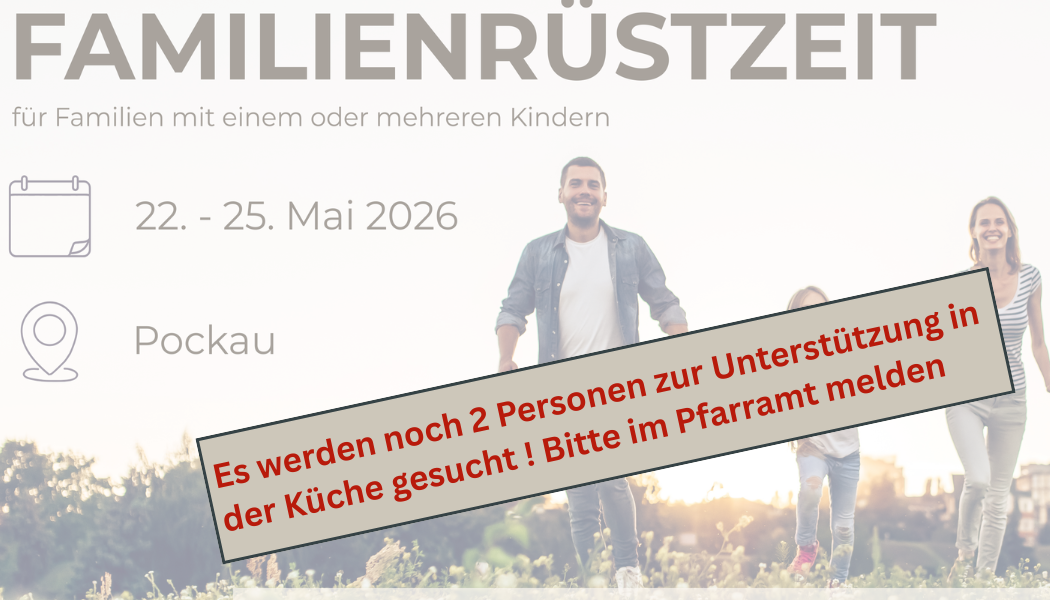 Unterstützung gesucht: Wir suchen noch 2 Personen zur Unterstützung in der Küche. Bei Interesse bitte im Pfarramt melden.