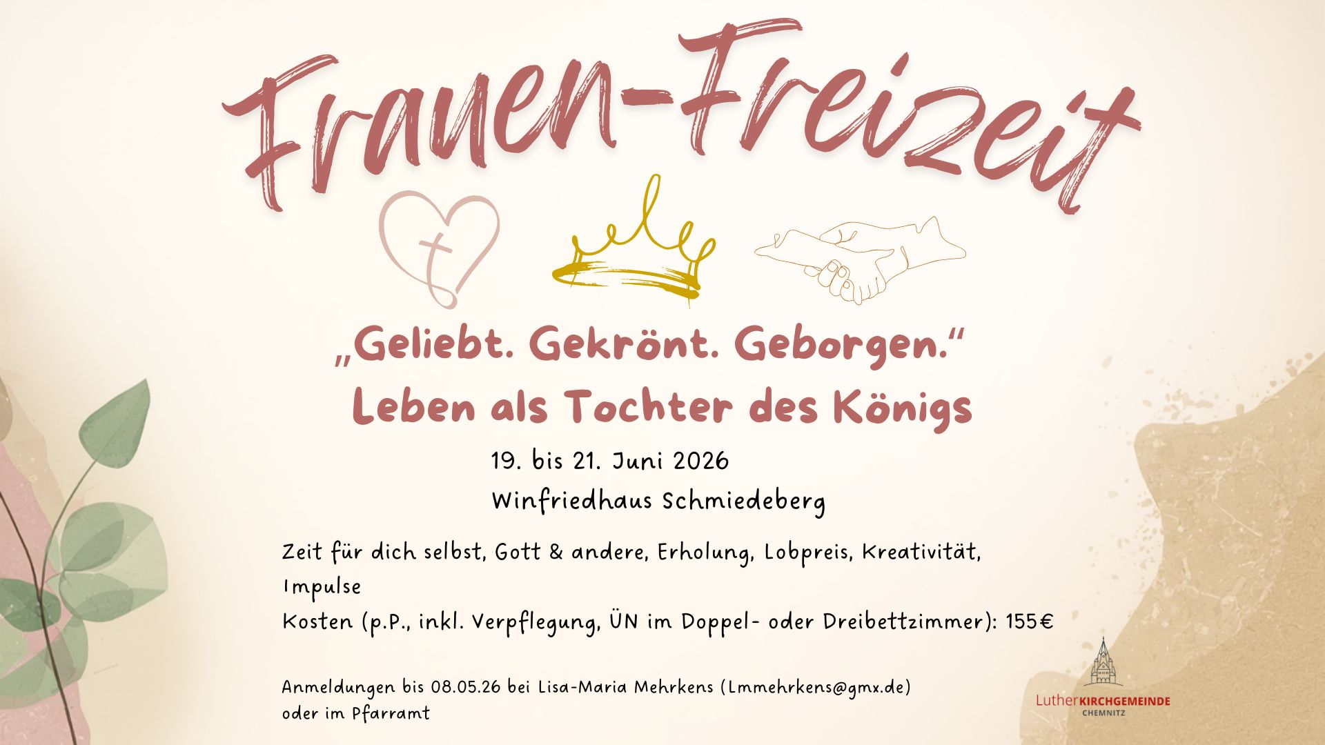 Unterstützung gesucht: Wir suchen noch Helferinnen und Helfer für den Familienermutigungstag. Bei Interesse tragt euch bitte dazu in die Listen in der Winterkirche ein.